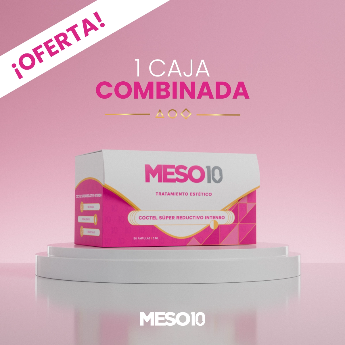 Caja con 5 Blister Combinados con 10 ámpulas 5 ml c/u. Una de las mejor marca en Mesoterapia.